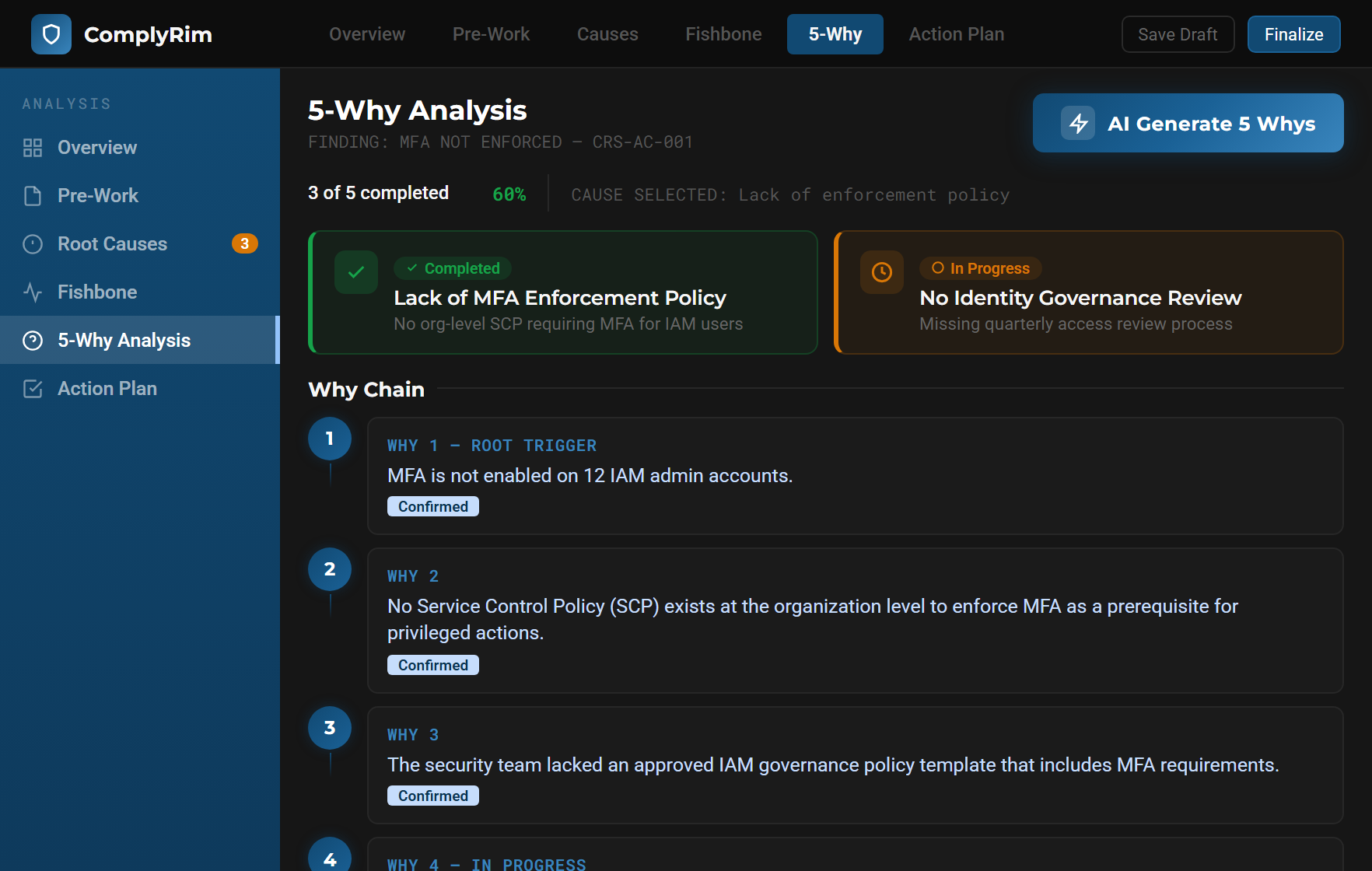 AI-guided root cause analysis with audit-ready reports, agile team accountability, and portfolio-level RCA aggregation.